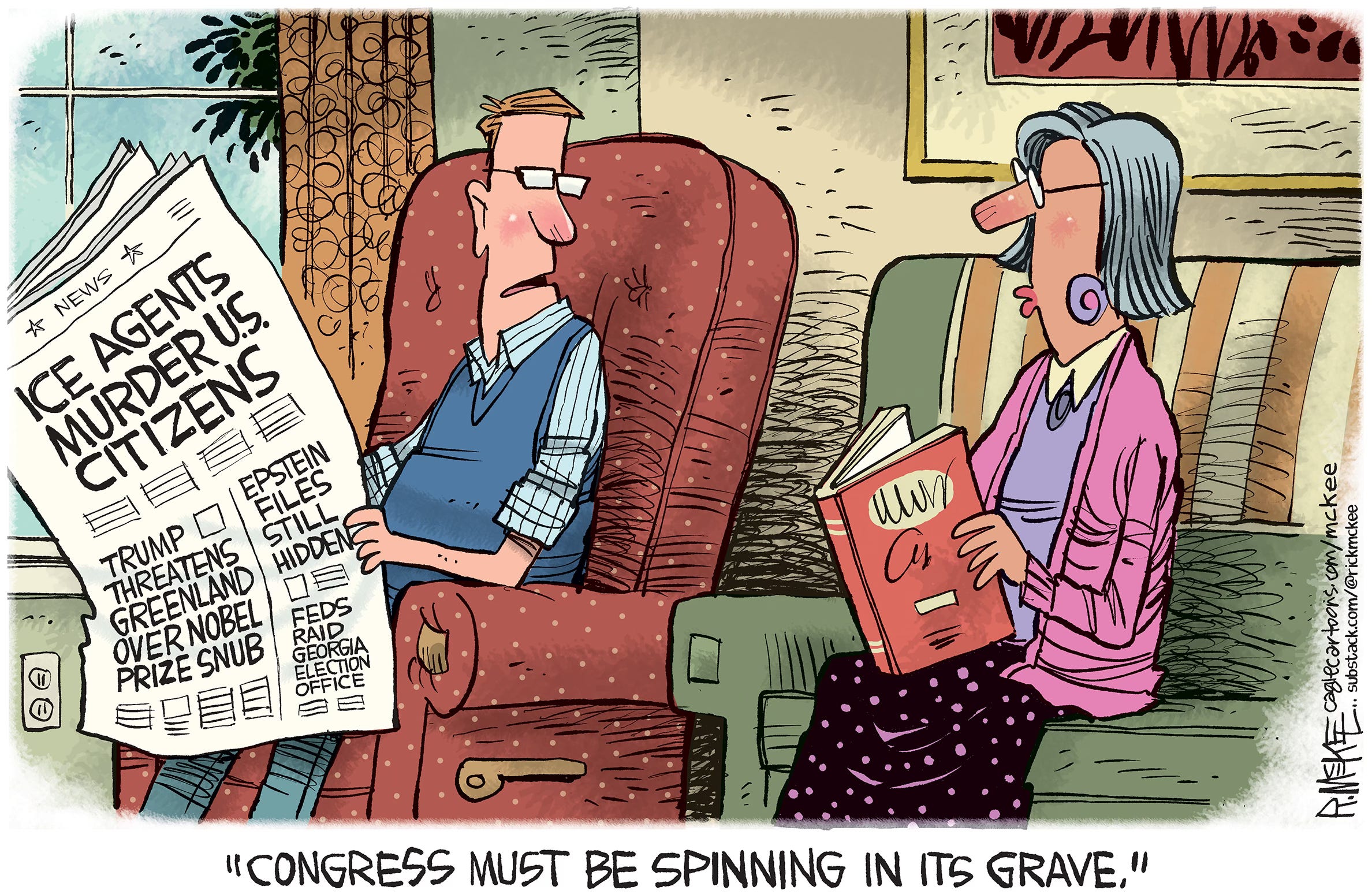Look, I know the obstacles Democrats in Congress face being the minority party, but they’re supposed to be leaders. Where’s the creativity? Where’s the thinking outside of the box? They’re doing nothing while Trump has U.S. citizens murdered in the streets, literally destroys the White House, trashes our international relationships, steamrolls over the norms of the rule of law and continues to cover up the Epstein files. And that’s just in the last two weeks. All I see from Democrats are fundraising pitches in online ads, which is infuriating, given that they’re doing zilch. Meanwhile, the Republicans are either too spineless to stop Trump or are complicit. It’s become cliche to complain about how bad Congress is, but these days, it has completely abdicated its role and might as well just turn in its Branch of Government card.