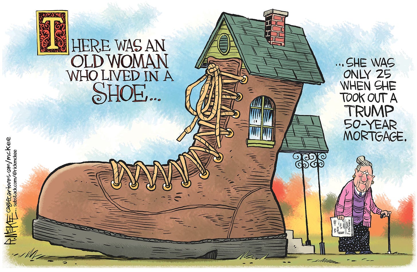 Trump’s proposal of a 50-year mortgage just shows how out of touch he is with the suffering of average Americans struggling to afford groceries and health care and for whom home ownership is completely out of reach. A loan that saddles the buyer with hundreds of thousands of dollars of extra interest with very little equity over five decades is essentially renting for life. A MAGA supporter defending this idiotic “solution” said to me, “Well, they should just pay more a month so they can pay it off early.” My response (obviously), “If they could pay extra, they wouldn’t need a 50-year mortgage in the first place!”