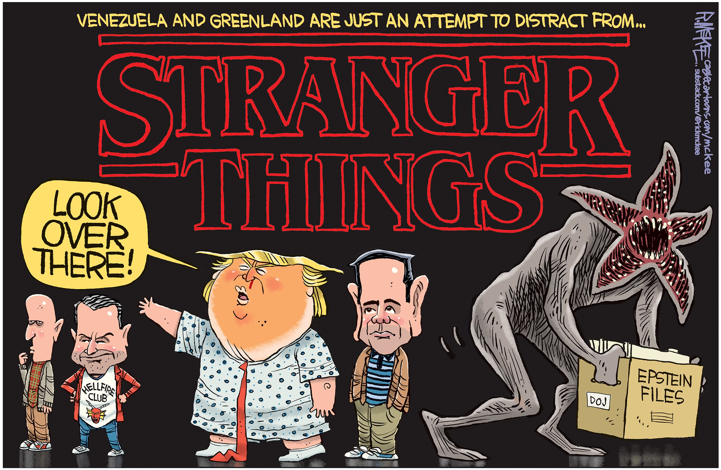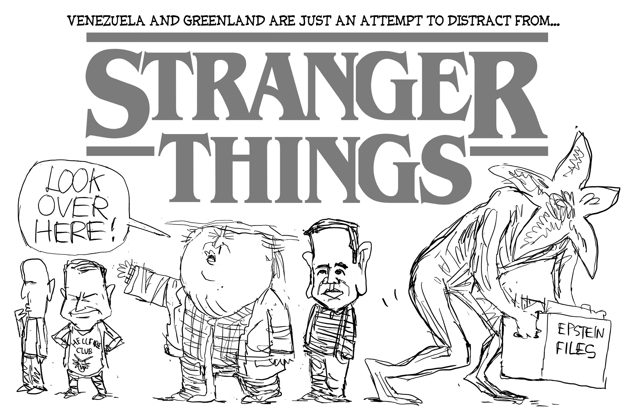 Trump’s ill-conceived actions in Venezuela and his saber-rattling threats against Greenland (and Mexico and Colombia, for that matter) all seem to be designed to take attention away from the fact that his DOJ is actively hiding the Epstein Files. Sure, he’d love to be a strong-man dictator like Putin or Kim Jong Un, thugs he openly idolizes, and he’s surrounded by a cast of idiots more than willing to help him succeed, but make no mistake: this is all about making sure those files never see the light of day. Very strange.