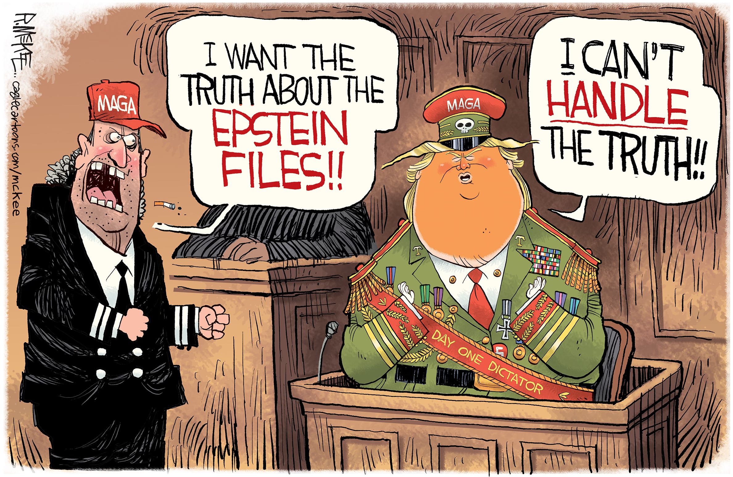 Here’s a cartoon from July of a parody of the Rob Reiner directed film, A Few Good Men, one of my favorites. It still works. I’ve got another one coming later today concerning Trump’s disgusting comments about the murder of Reiner and his wife, Michele.