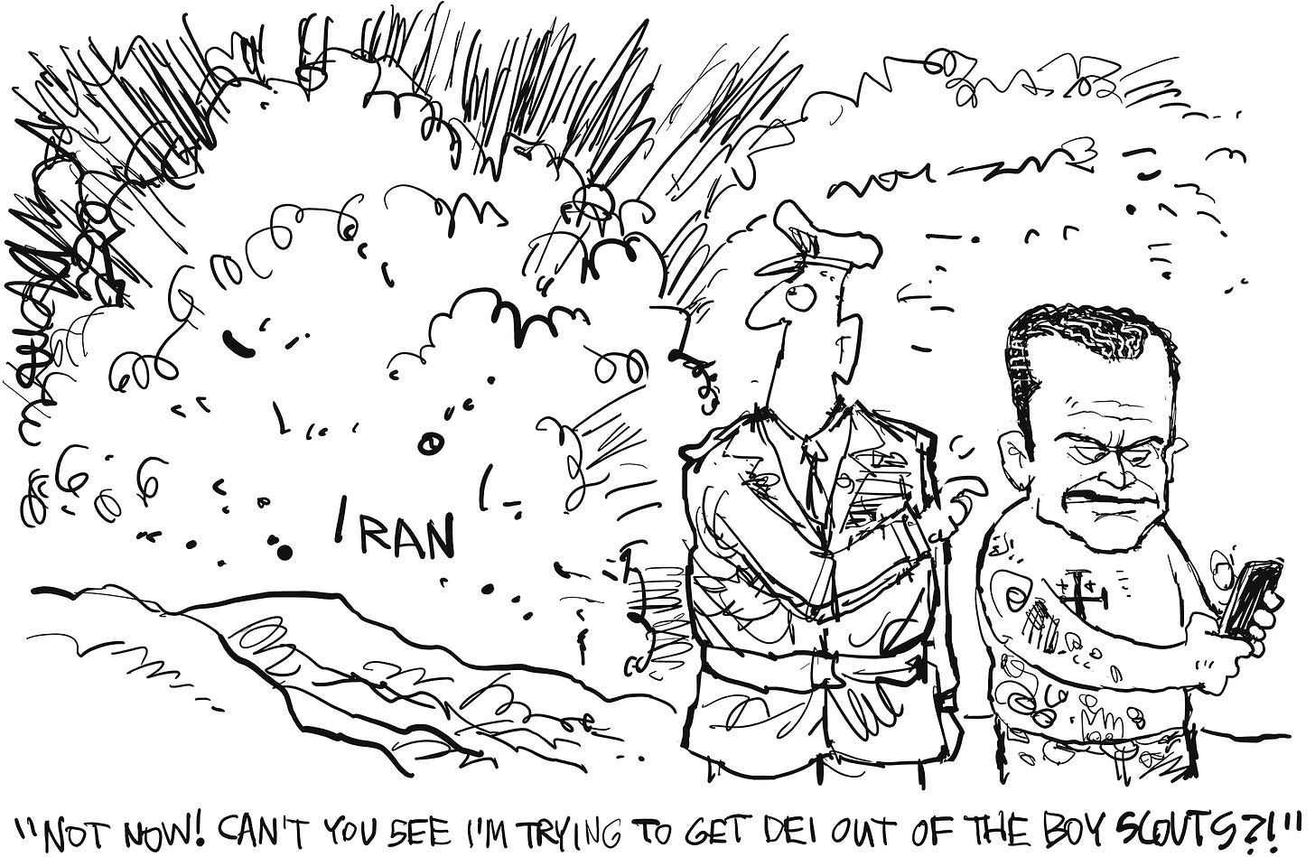 My fellow Americans, just less than 24 hours ago, Dept. of War Secretary, Pete Hegseth, has reached an historic deal with the Boy Scouts of America where they have agreed to back down from their reckless, dangerous pursuit of DEI policies, which threaten all Americans, but especially the fighting men — and sometimes women — (only if they’re good enough, of course) of the US military. We never know when we might have to ask them to put their lives at risk and we can’t have them all stressed out about whether the Boy Scouts are fooling around with godless ideas about race and inclusion. This deal will ensure peace with the Boy Scouts going forward and should be noted by the Nobel Peace Prize committee. Thank you for your attention to this matter!
